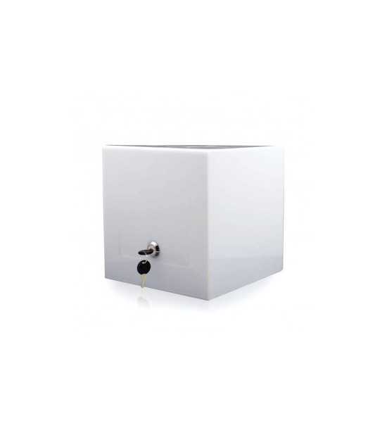 "Tumble Box" est une urne de vote pas cher, robuste, de couleur blanche et de finition opaque, à poser sur la table, le comptoir ou le bureau.