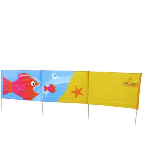 Onze strandschermen (of windschermen) zijn bedrukt op een hoogwaardige UV-bestendige polyester stof. De standaardmaten zijn: 70x300cm en 70x400cm.